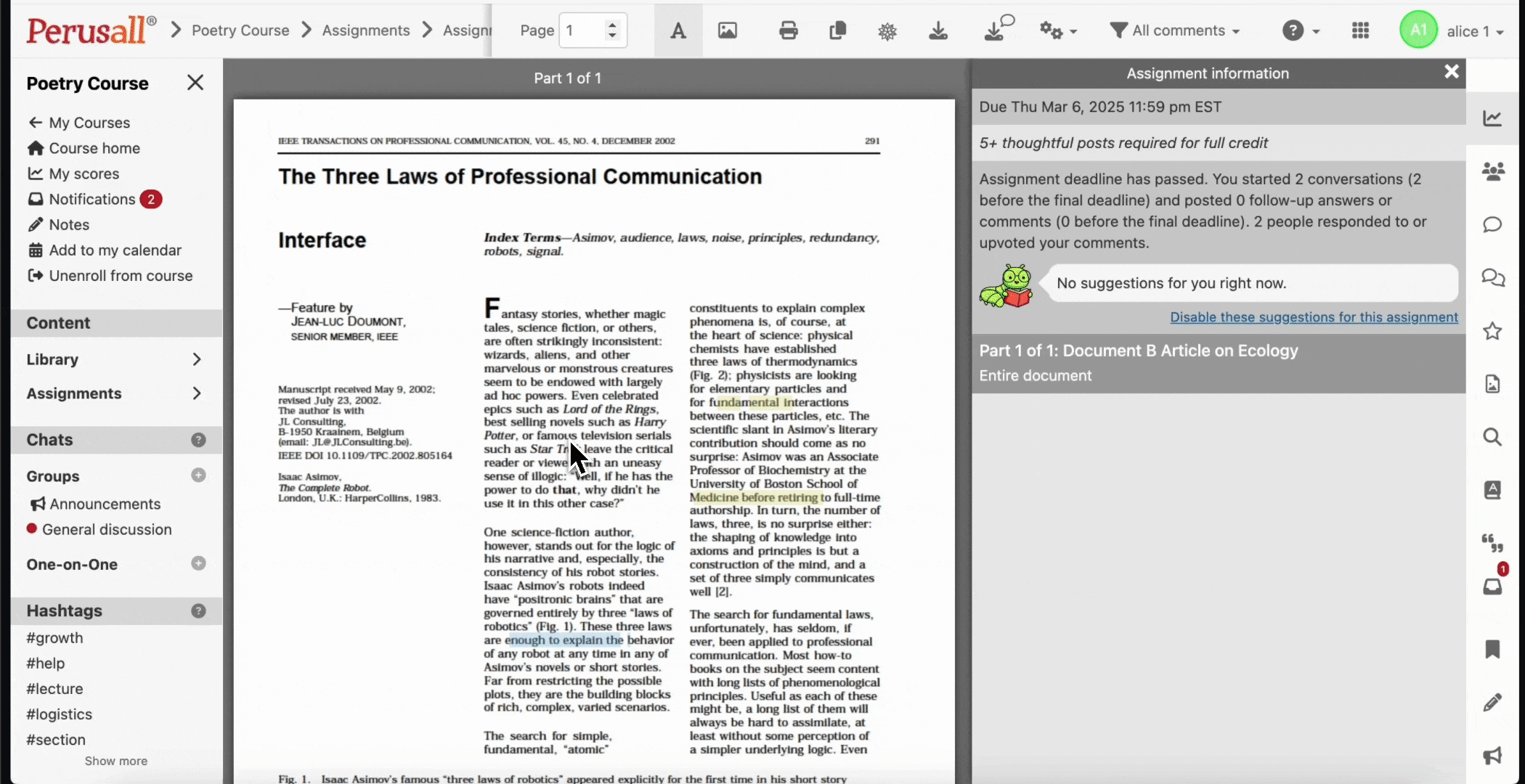(Attribution for article: most of the following text is taken from Perusall's online support article on the topic).